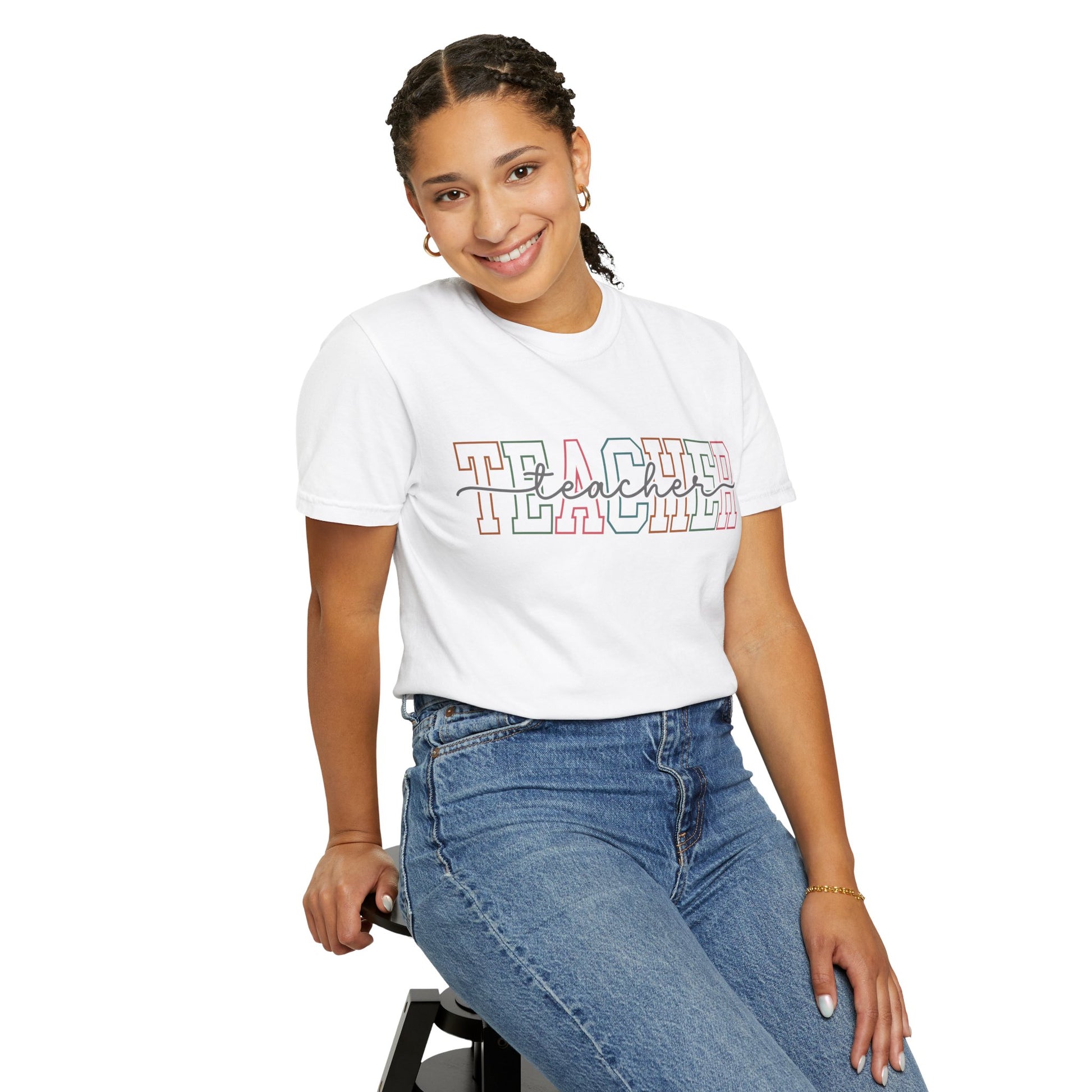 Colorful 'Teacher' Unisex Jersey Short Sleeve Tee - Perfect Gift for Educators