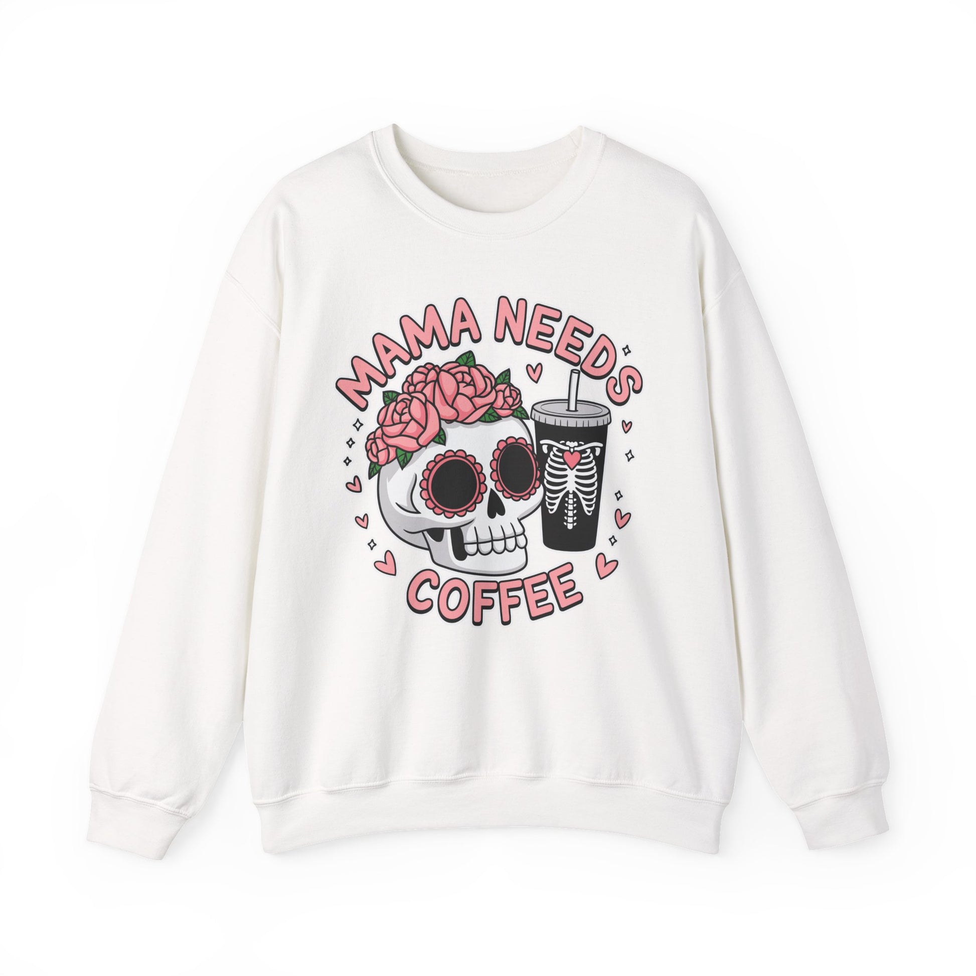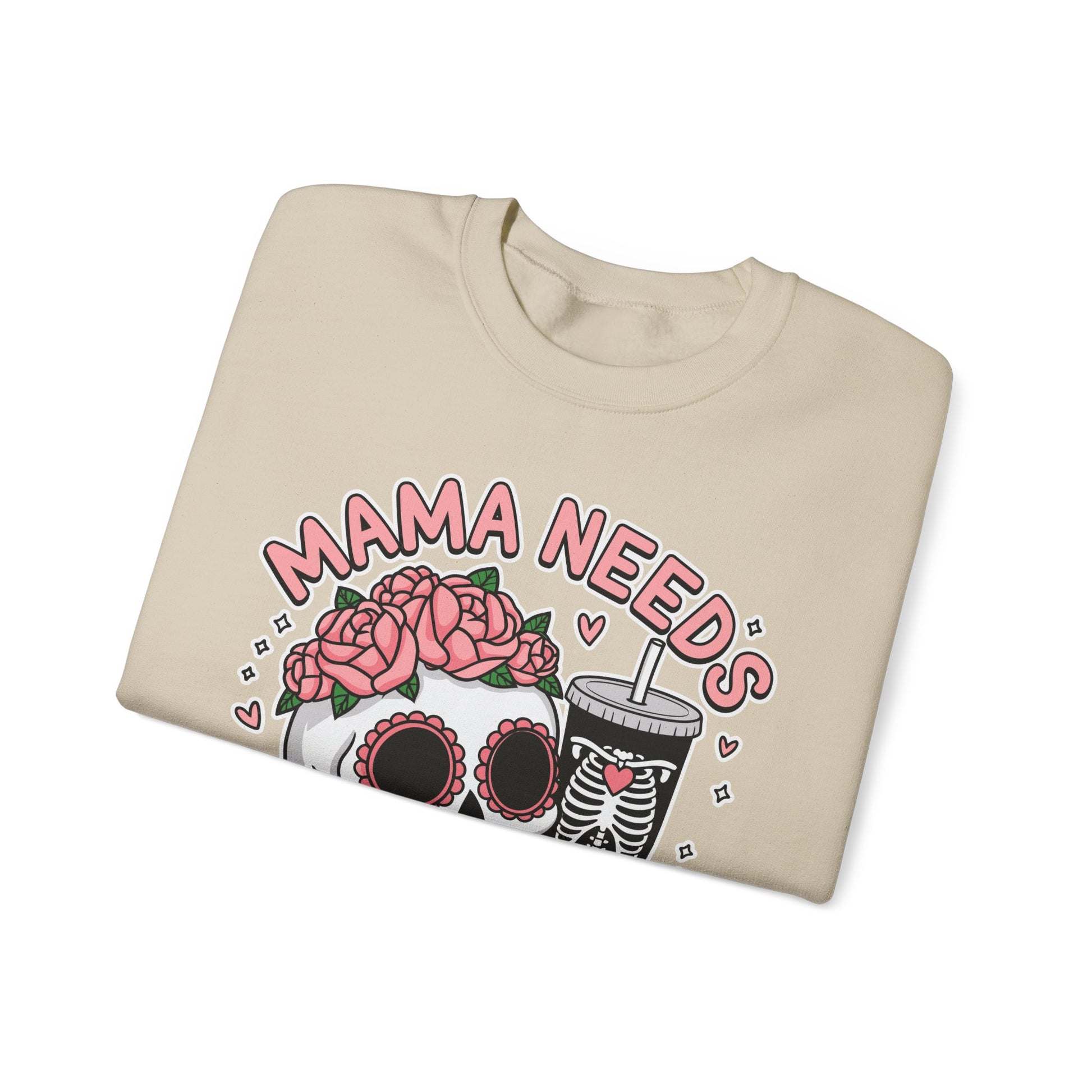 Mama Needs Coffee Skull Sweatshirt, Cozy Crewneck for Moms, Gift for Coffee Lovers, Everyday Comfort, Fun Casual Wear