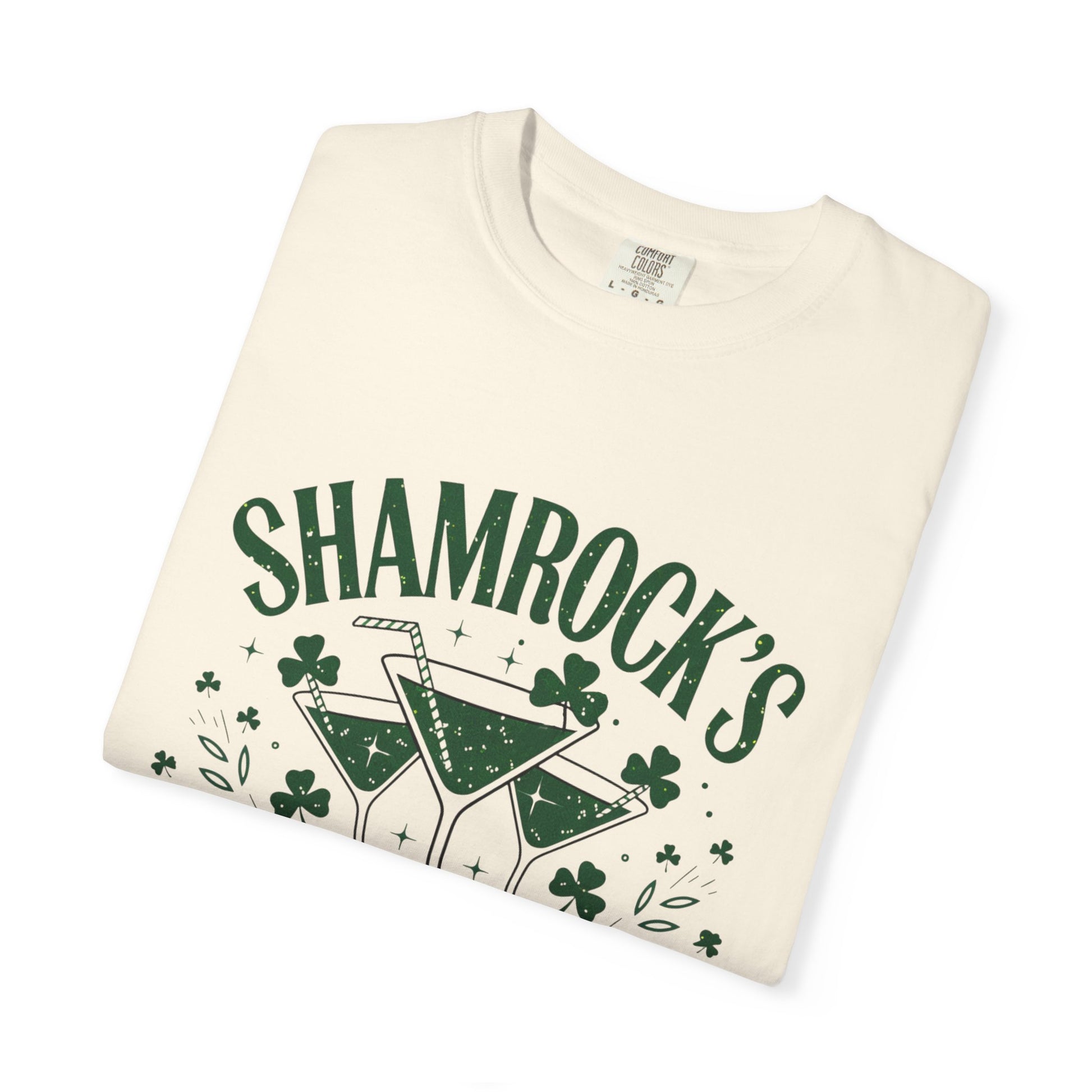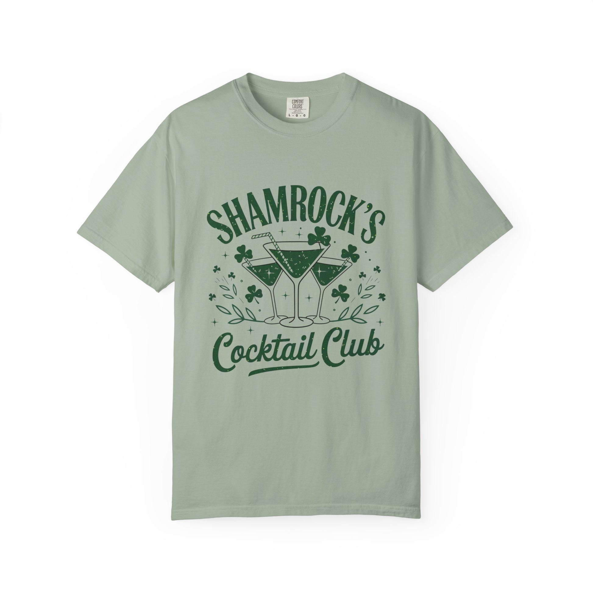 A soft, garment-dyed tee that feels lived-in from day one. This heavyweight cotton shirt carries a vintage-inspired “Shamrock’s Cocktail Club” graphic in deep green ink — cheerful clovers and raised cocktail glasses that nod to slow evenings and friendly toasts. The relaxed fit and pre-shrunk, ring-spun fabric make it comfortable for long nights out or low-key afternoons at home. Tubular construction and double-needle seams give the shirt a clean silhouette and durable finish, while the sewn-in label keeps the neckline smooth. Available in a wide range of colors and sizes, it blends a retro pub vibe with everyday wearability.