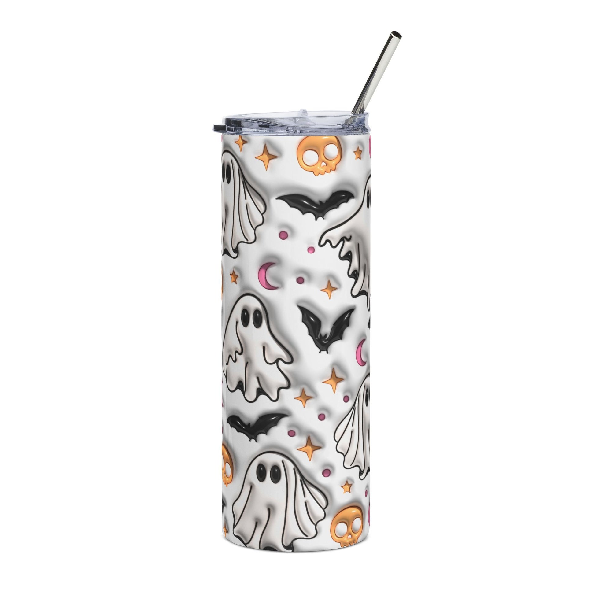 Spooky Ghost Tumbler, Halloween Drinkware for Parties, 20oz Stainless Steel, Trick or Treat Gift, Reusable Travel Cup, Fall Decor