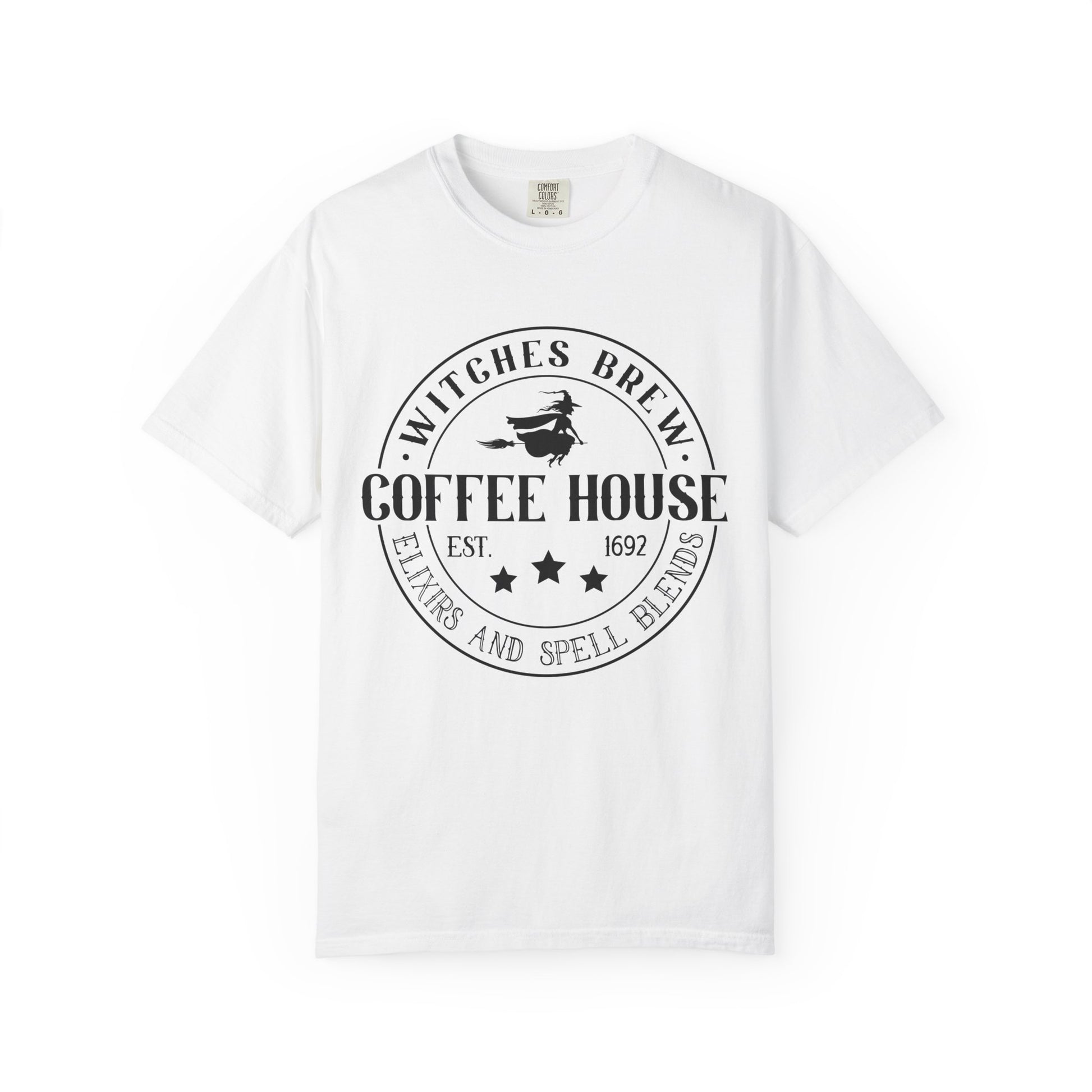 Witches Brew Coffee House Tee, Unisex Short Sleeve Shirt, Coffee Lover Gift, Halloween Apparel, Witchy T-Shirt, Casual Wear